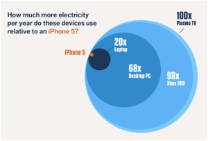 Powering the 170 million iPhones purchased this year will require the same amount of annual energy needed to power 54,000 homes in the USA. That’s about the size of Oxford, UK.